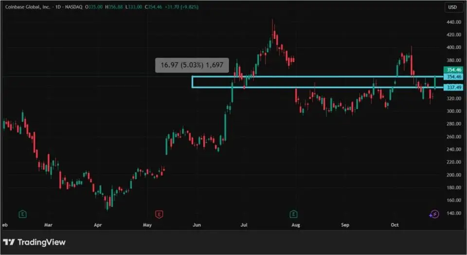 На втором месте криптобиржа Coinbase с рыночной капитализацией $91,07 млрд. В октябре 2025 года ее акции выросли на 5,03%. Весь месяц для ценных бумаг Coinbase проходил под знаком политической повестки дня. В начале и конце месяца акции росли на отсутствии и менее жесткой риторике Трампа относительно Китая. В середине же октября случился обвал. Дальнейшая динамика Coinbase будет зависеть от финансовых результатов за третий квартал 2025 года, которые будут представлены на суд общественности 30 октября.