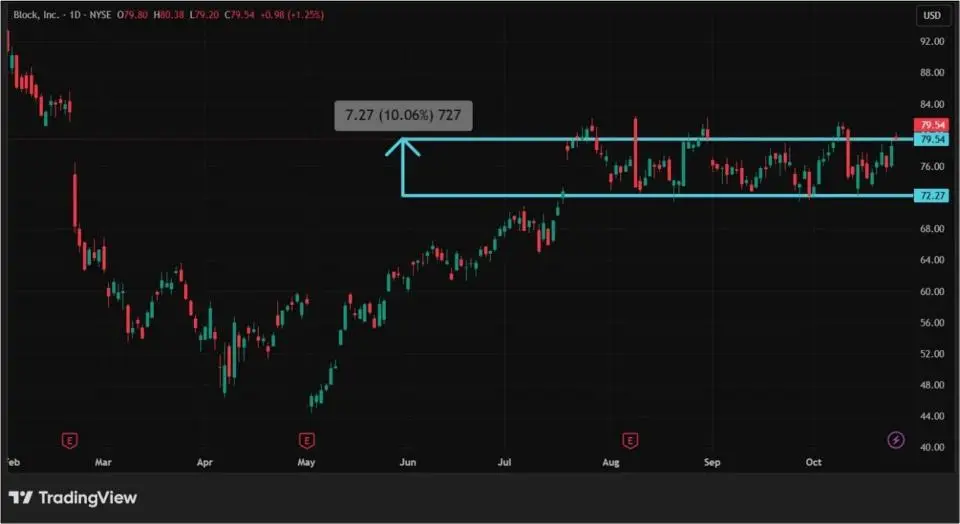 Шестое место достается финтех-компании Block (бывшая Square) с рыночной капитализацией $48,48 млрд. Ее продукты Square и Cash App предоставляют услуги в криптовалюте, а сама организация инвестирует в биткоин. В октябре акции Block прибавили более 10%. При этом, месяц прошел для нее без больших потрясений. Даже импортно-экспортная эпопея Трампа с Китаем мало отразилась на ценных бумагах XYZ. Вот уже 3,5 месяца они находятся в боковике между $71,5 и $82.