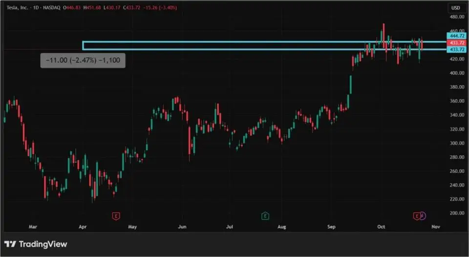 Лидером по рыночной капиитализации остается производитель электромобилей и по совместительству один из крупнейших держателей биткоина — Tesla с $1,442 трлн. В октябре 2025 года ее акции просели на 2,47%. При этом, основную роль в этом сыграли не взаимоотношение США и Китая, а не оправдавшие ожидания финансовые итоги за третий квартал. Несмотря на то, что выручка выросла за этот период на 12%, чистая прибыль упала на 37%. Неудовлетворительные показатели заработков компании связаны с падением цен на электромобили, а также увеличением операционных издержек в 1,5 раза.