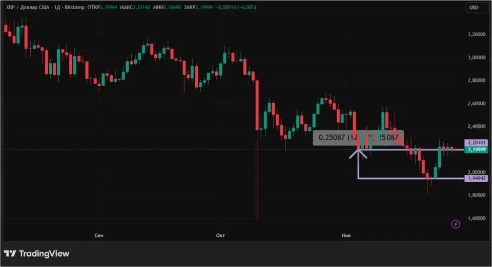 Криптовалюта компании Ripple с 21 по 28 ноября подорожала на 12,87%. По сути весь рост пришелся на два дня, 23 и 24 ноября, когда XRP прибавила 5,08% и 8,71% соответственно. Всю остальную часть недели XRP демонстрировала околонулевую динамику.