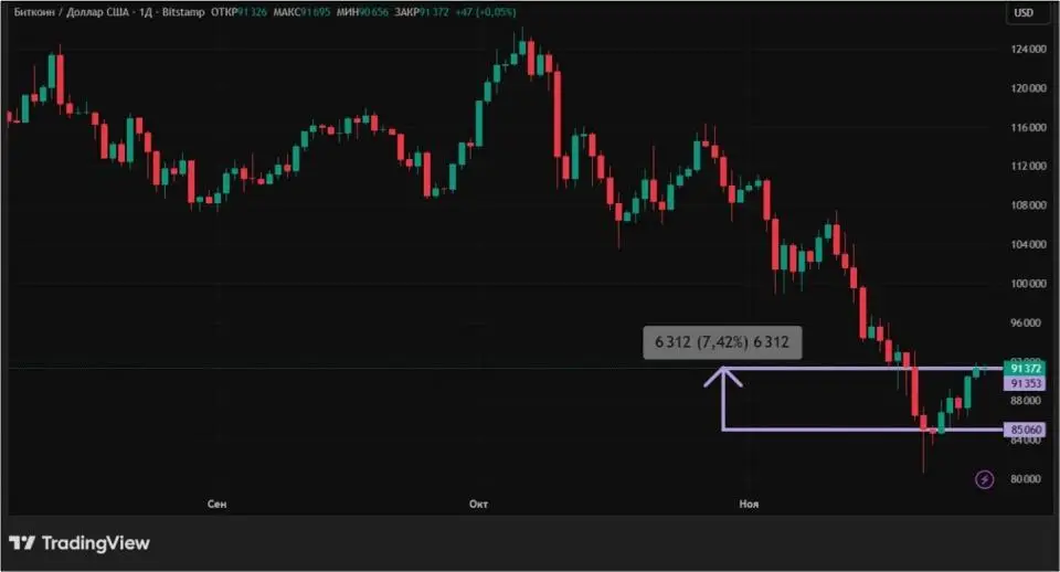 С 21 по 28 ноября 2025 года биткоин прибавил 7,42%. После непродолжительного времени снижения цены BTC снова торгуется выше $90 000. Большая часть недели прошла под диктовку покупателей: пять из семи торговых сессий завершились в плюсе.