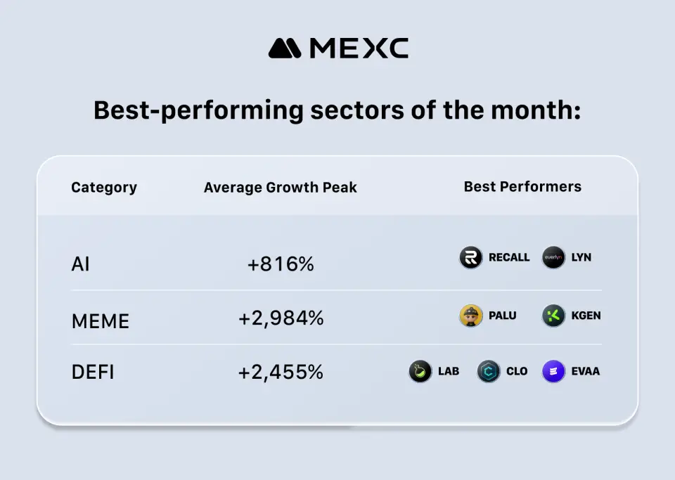 MEXC: рост ИИ, мемкоинов и DeFi обеспечил инвесторам 1625% прибыли в октябре