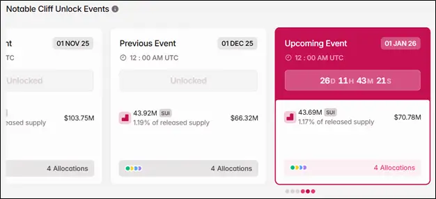 Новость совпала с массивной разблокировкой токенов криптовалюты. 1 декабря в обращение поступили новые 43,92 млн коинов на сумму $66,32 млн. Тем не менее, даже столь значительное увеличение предложения не помешало Sui подрасти по итогам недели.